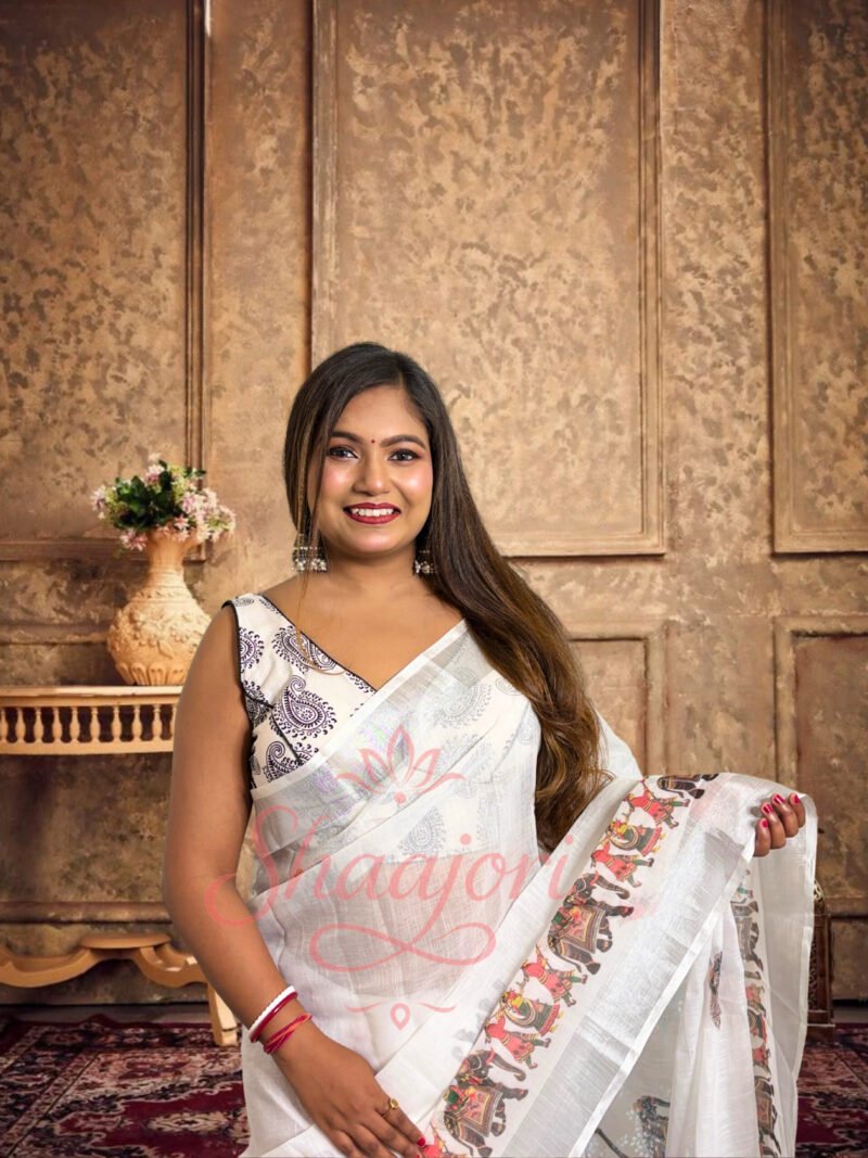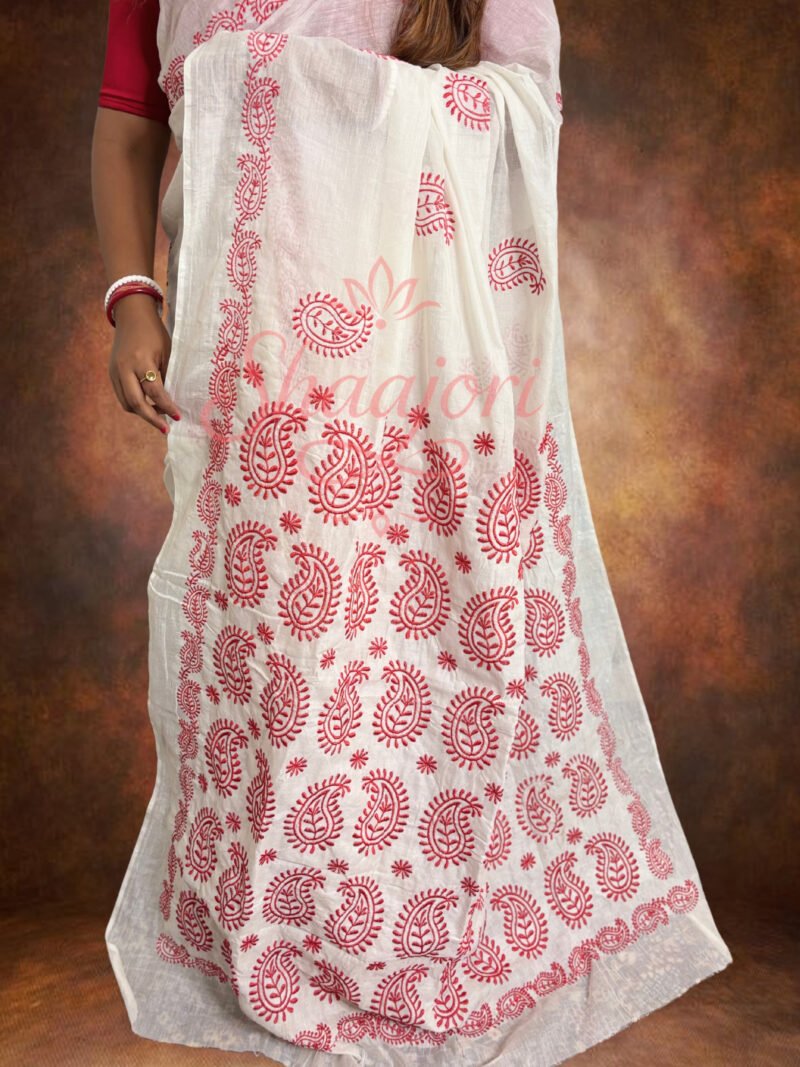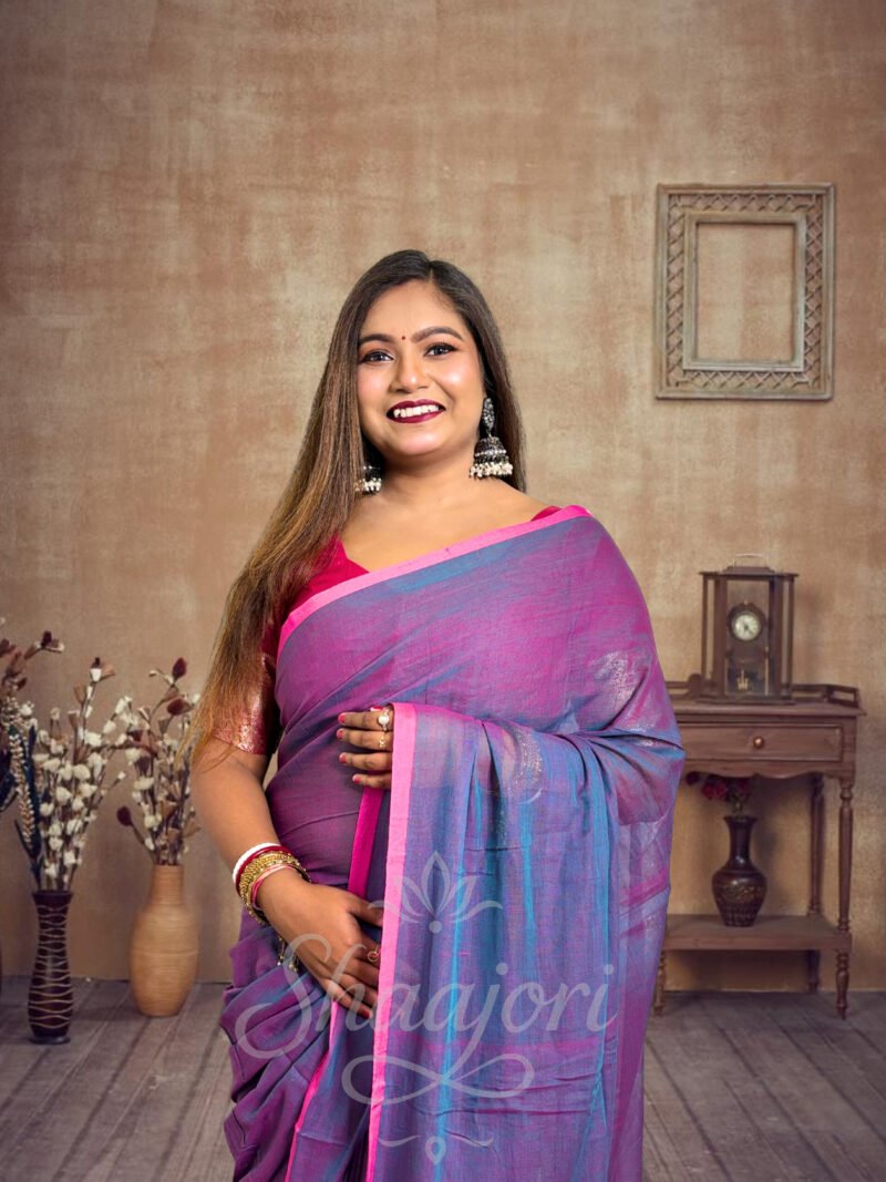Lavender Mul Cotton Saree with White Daisy Floral Prints